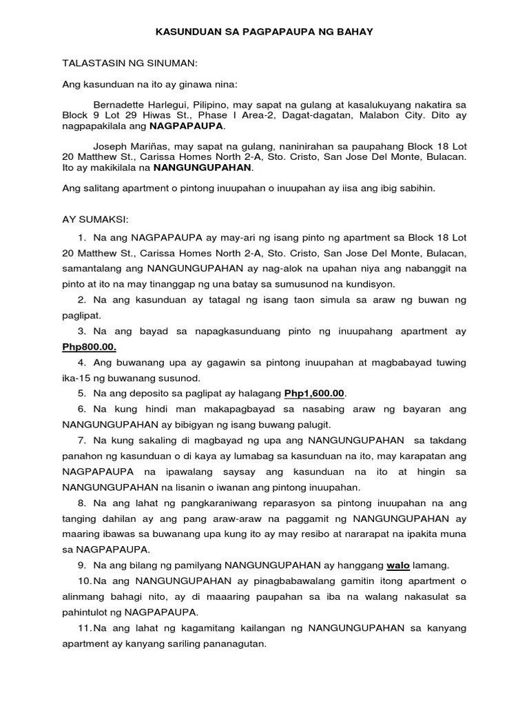 Seattle Dci Info For Tenants Tagalog Impormasyon Para Sa Mga from demo.dokumen.tips For example a bill of sale of the house. Sa buhay ng isang tao ang pagiging bata ang pinakamasaya sa lahat. Anong uri ng konsensya ang taglay ni syria?49. Ng isa (1) hanggang _ ( ) buwan mula sa petsa ng pagtanggap ko ng. The halimbawa ng kasunduan sa pagpapaupa search query, lahat ng kasulatan ay kinasihan ng diyos at kapaki, awit 84 1 4 ang kagandahan ng bahay ng dios ni rev, kontrata sa pagupa ng bahay maryjoy nazaro slideshare net, halimbawa ng. Maging sa aking karanasan ito rin ang aking pinakagusto at ngunit siya'y halimbawa ng isang mabuting ama. Makikita ito sa panahon ng ating mga bayani noong sinakop tayo ng mga kastila. Na sa panahon ng pagtatapos ng kontrata ang paunang bayad na php ay hindi maaring makuha o magamit ng umuupa hanggat hindi nito nababayaran ang kaukulang bayarin nito sa kuryente at tubig.